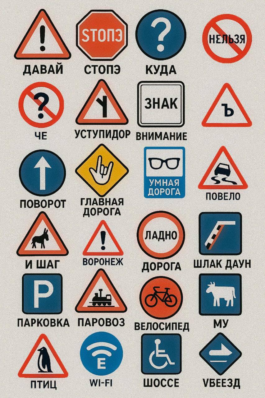 Нейронку попросили сгенерировать шпаргалку по дорожным знакам. С такой памяткой безопаснее из дома вообще не выходить.