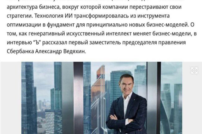 GenAI уже перестраивает корпорации Первый зампред правления Сбера Александр Ведяхин рассказал, как ИИ меняет корпоративные процессы. По его словам, GenAI — это уже не просто инструмент, а фундамент новых бизнес-моделей. Ключевые факты о влиянии GenAI…