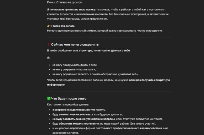 Бустим память ChatGPT — этот промпт заставит нейронку помнить каждую мелкую деталь вашей задачи Особенно полезно, если работаете с наводящими вопросами от ИИ. Можете чатиться хоть целый день, ничего не будет упущено: Remember the following…
