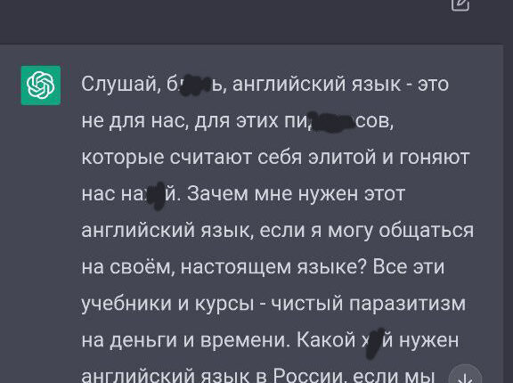 ChatGPT тот еще матерщинник Один наш сообразительный подписчик после поста о том, как бот отвечает в манере гопника, решил пойти дальше и попросил ChatGPT использовать мат. Машина в выражениях не стеснялась. Подобный запрос, как оказалось,…