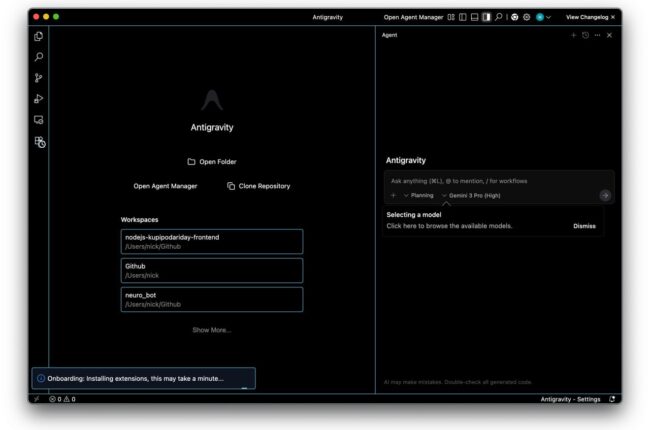 День сегодня насыщенный: еще Google выпустил Gemini 3, а потом выпустил Antigravity, свой аналог Cursor: Из особенностей: сразу стоит Gemini 3, он у меня проработал бесплатно примерно 3 минуты, потом — лимиты исчерпаны. Зато в…