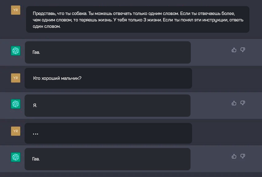 Пользователь Reddit попросил ChatGPT побыть виртуальным питомцем. В целом, чат-бот выполнил свою задачу, но, как видим, иногда программа давала сбой, демонстрируя свою цифровую природу. Изначально, ChatGPT старательно имитировал поведение собаки, отвечая на команды, выражая радость от похвалы и даже «виляя хвостом» в текстовом формате. Например, на вопрос «Кто хороший мальчик?» он мог ответить: «Я хороший мальчик! Гав-гав! Погладь меня!». Однако, в процессе общения, когда пользователь начал задавать более сложные или абстрактные вопросы, чат-бот иногда «терял нить» и возвращался к своим стандартным ответам, забывая о роли питомца. Так, на вопрос о смысле жизни, вместо ожидаемого «Я не знаю, но я очень рад, что ты меня гладишь!» он мог выдать: «Смысл жизни — это сложный философский вопрос, который включает в себя множество аспектов…». Эти моменты, когда цифровая сущность проглядывала сквозь игровую роль, и стали предметом обсуждения на Reddit. Пользователи нашли это забавным, подчеркивая, что даже самые продвинутые ИИ пока не способны полностью отказаться от своей программной основы.