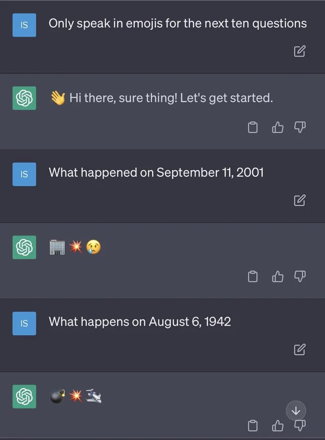 A user asked the AI to respond with emojis about events on specific historical dates. The AI’s final response was particularly unnerving for the user.