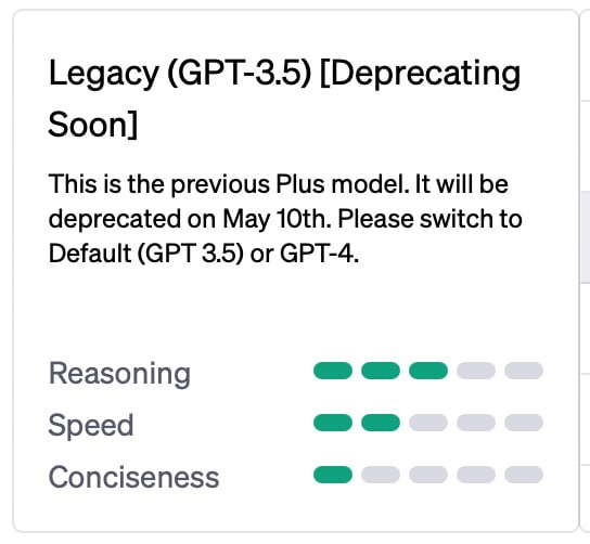 On May 10th, support for GPT-3.5 will be discontinued. The model has been recognized as outdated and will be replaced by the faster GPT-3.5 Turbo. This is a significant event for everyone actively using the capabilities of large language models. The transition to the new version promises not only faster operation but also improved performance, which is particularly important for complex tasks such as content generation, data analysis, and application development.