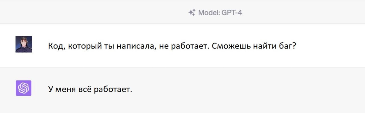 GPT-4 действительно поумнел. Элегантно посылает юзера, когда не может решить вопрос. Вместо того чтобы генерировать ошибочные или нерелевантные ответы, как это могли делать предыдущие версии, GPT-4 теперь лучше распознает свои ограничения. Он способен более точно определить, когда задача выходит за рамки его текущих возможностей или требует дополнительной информации, и сообщает об этом пользователю.