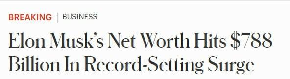 Его состояние на прошлой неделе приблизилось к $788 млрд благодаря росту акций Tesla. За полгода его активы почти удвоились, что превышает все состояние второго в мире богача, основателя Oracle Ларри Эллисона.