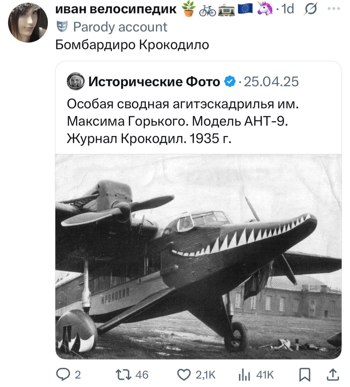 • Title: Бомбардиро-Крокодило: Первый Советский Прототип ✈️ (58 символов)