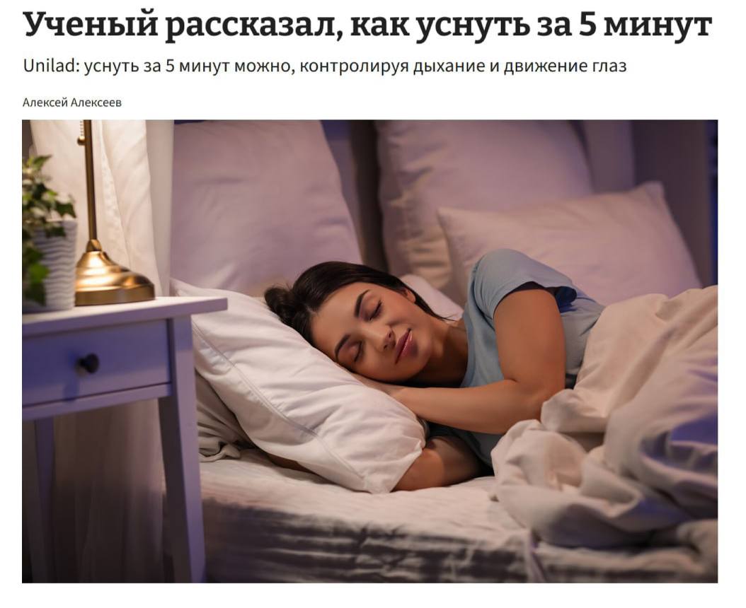 Как уснуть за 5 минут: метод врачей для быстрого сна Врачи поделились эффективным способом быстрого засыпания – достаточно контролировать дыхание и движение глаз. Этот метод поможет справиться с бессонницей или уснуть, если вы проснулись посреди ночи. Как быстро уснуть: инструкция Этот простой метод включает в себя: Не открываем глаза. Делаем медленные длинные выдохи. Под закрытыми веками плавно водим глазами из стороны в сторону. Попробуйте прямо сегодня! Техника 4-7-8: секрет быстрого сна Этот метод, часто называемый «техника 4-7-8», основан на принципах релаксации и позволяет быстро перейти в состояние дремоты. [Узнайте больше о влиянии дыхания на сон](https://example.com/breath-and-sleep/). Медленное дыхание активирует парасимпатическую нервную систему, способствующую расслаблению. Движения глаз, напоминающие фазу быстрого сна (REM), также могут помочь «переключить» мозг в режим сна. Секреты эффективной практики Чтобы добиться максимального эффекта, важно сосредоточиться на ощущениях своего тела. Представьте, как напряжение покидает вас с каждым выдохом. Попробуйте визуализировать что-то успокаивающее, например, тихий пляж или звездное небо. Если вы проснулись ночью, повторите процедуру несколько раз. Для тех, кто борется с хронической бессонницей, этот метод может стать полезным дополнением к другим методам релаксации. Регулярная практика поможет улучшить качество сна. Discover More ways to improve your sleep! ПОЛУЧИТЕ БОНУСЫ ОТ ЛУЧШИХ ЛИЦЕНЗИОННЫХ ОНЛАЙН КАЗИНО ЗДЕСЬ Навигация по записям Анализ опроса сотрудников: Инсайты и улучшение среды Не стоит бороться с котом на руку: Советы
