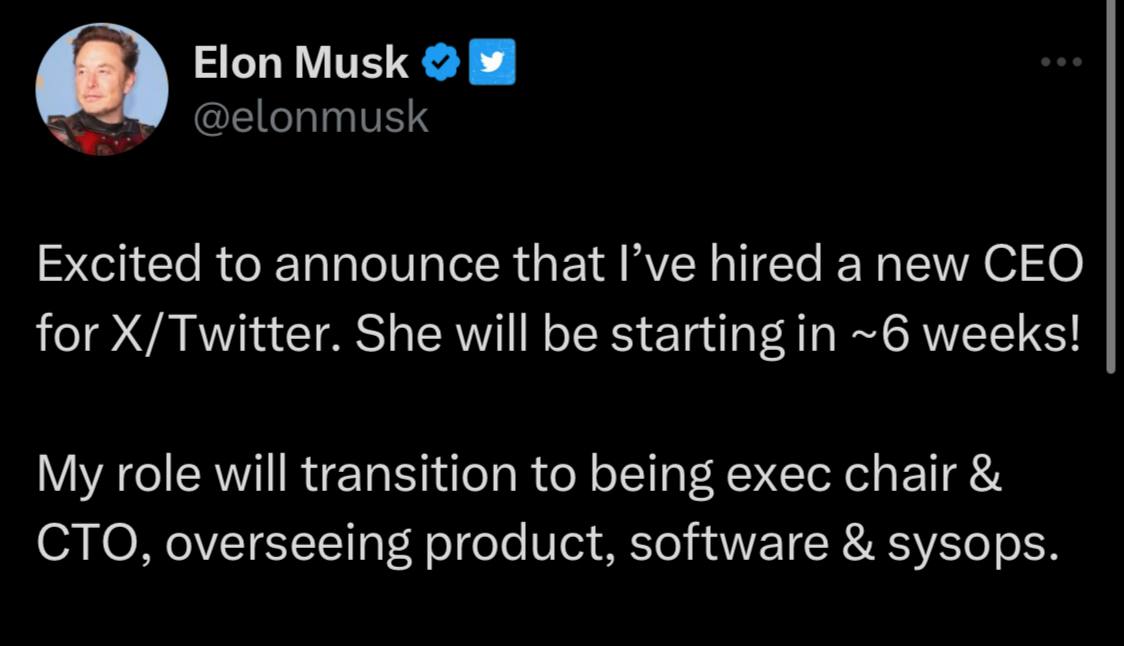 Сегодня Маск пишет, что нанял нового СЕО и это ОНА. Это решение знаменует собой новый этап для Twitter, где фокус смещается на укрепление рекламного направления под руководством опытного специалиста.