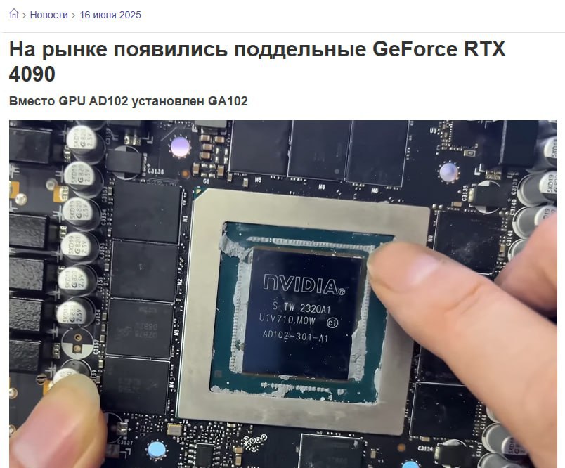 ❗️ RTX 4090 начали массово подделывать в Китае