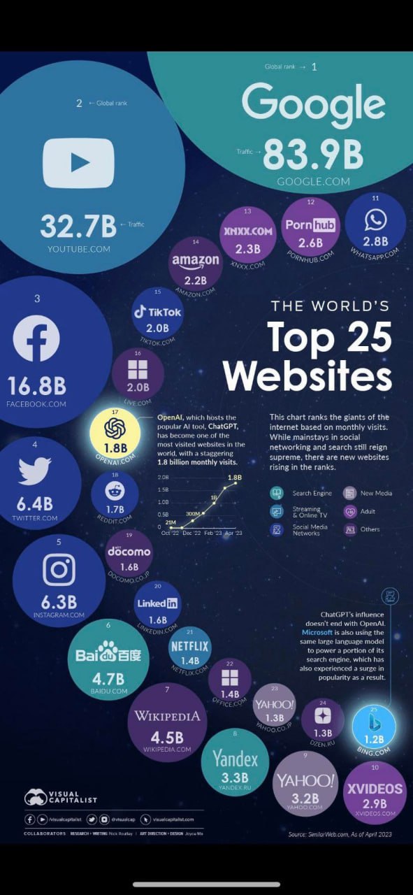 Comparing OpenAI with giants like Netflix and Po*nHub highlights the scale of its influence. Netflix, a long-standing leader in entertainment content, traditionally attracts a huge audience. Po*nHub, in turn, is one of the most visited sites globally, demonstrating sustained interest in a specific type of content.