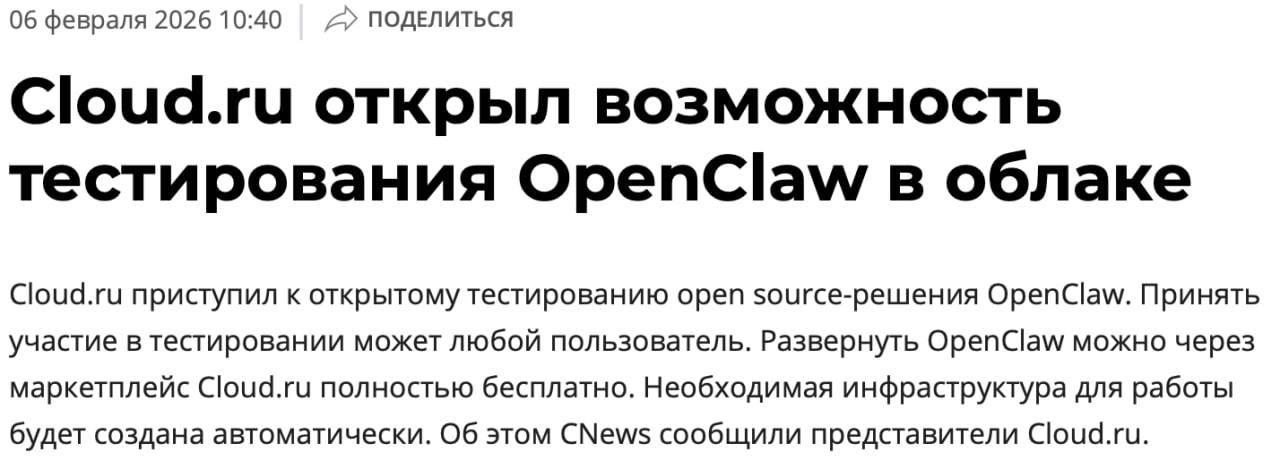 Cloud.ru выкатили OpenClaw — теперь можно бесплатно пощупать ИИ-агента в облаке