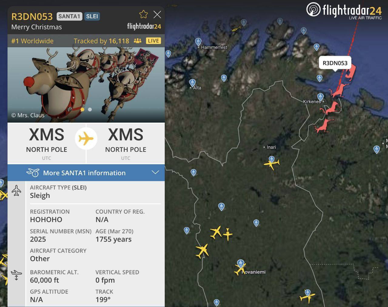 Повозку Санты теперь можно отследить — Flightradar24 запастил ежегодную фичу
