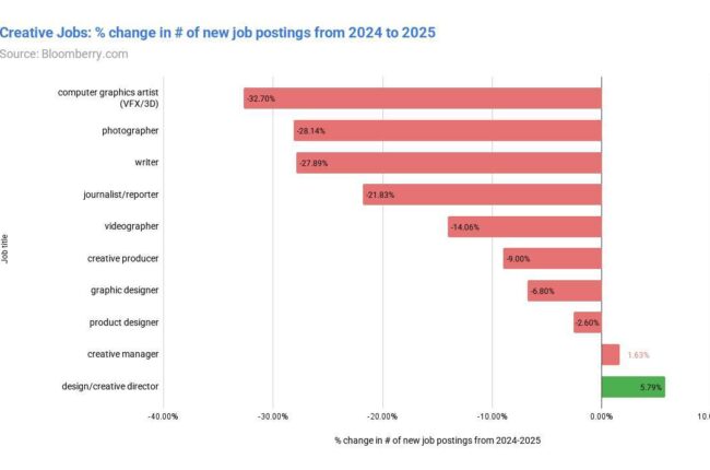 ИИ атаковали сферу креатива — ученые проанализировали 180 млн вакансий Самый серьезное уменьшение спроса замечено среди: Графических дизайнеров — на 33% Фотографов — на 28% Копирайтеров — на 21% В IT-сфере задело только фронтендеров —…