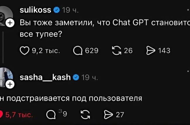 В Сети обнаружен вайбврач, со своим лучшим другом — ChatGPT Видимо «хорошо» учился. В Сети обнаружен вайбврач, со своим лучшим другом — ChatGPT. Этот необычный дуэт, словно доктор Хаус XXI века и его верный помощник,…