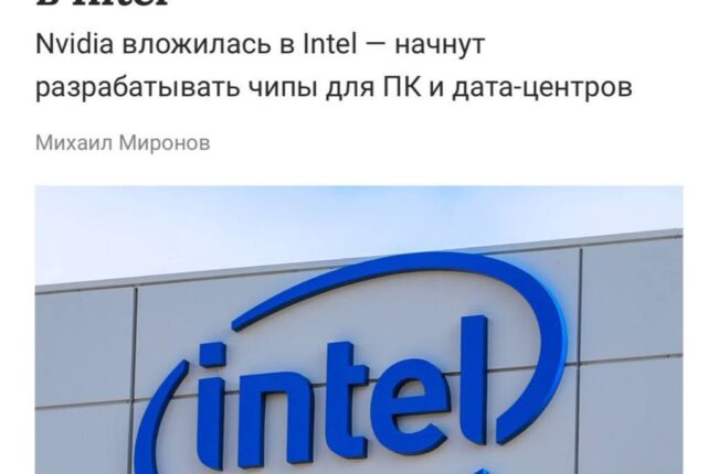 Nvidia вбухает $5 млрд в Intel: Стратегическое партнерство для победы над AMD Nvidia вбухает $5 млрд в Intel Компании займутся разработкой чипов для ПК и дата-центров. Они будут делаться на базе х86. Все эти мувы…