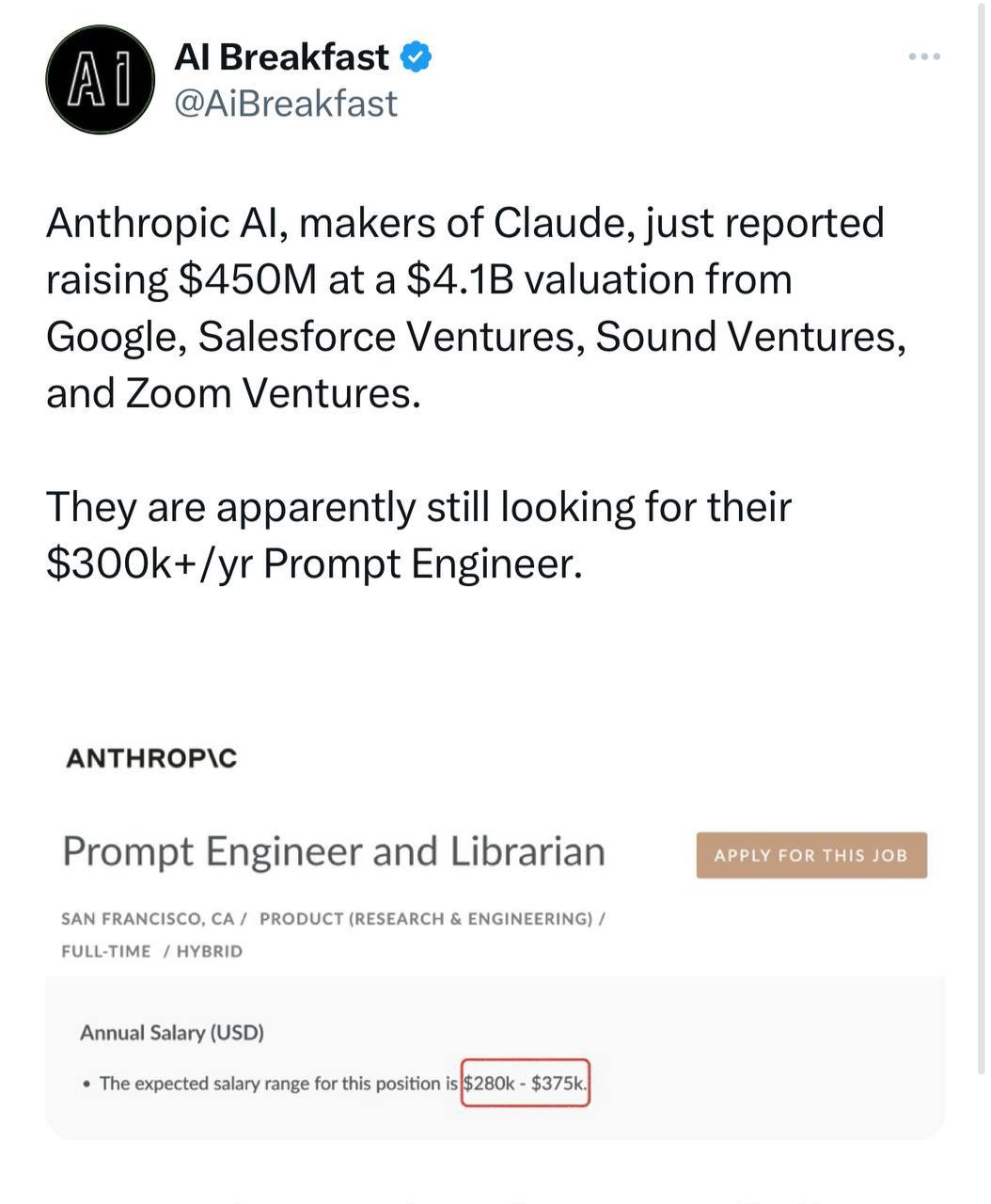 Да, так и есть. Ребята из стартапа AnthropicAi привлекли 450 миллионов долларов и теперь могут себе позволить такого специалиста. Судя по описанию вакансии, его максимальная з/п может достигать 375.000$ в год.