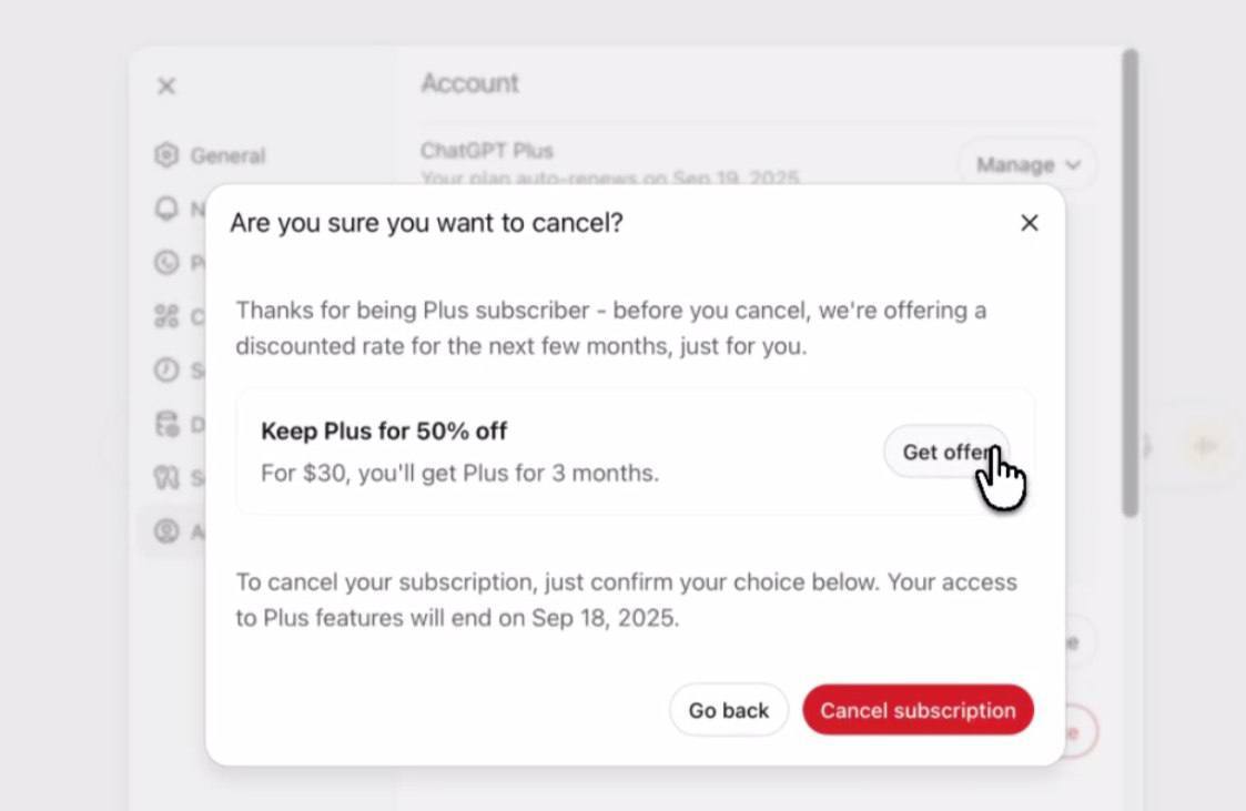 Возможен фикс, поэтому не упускаем возможность. Сейчас самое время воспользоваться этой выгодной акцией, пока она доступна. Пользователи сообщают о появлении предложения после отмены подписки на ChatGPT Plus, открывая доступ к премиум-функциям по сниженной цене.