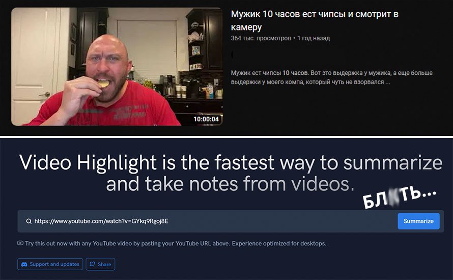 Now you don’t even need to press «Play» – Video Highlight will watch any YouTube video for you and create a text summary. Use the tool here. It works very simply: paste the video link and click Summarize.