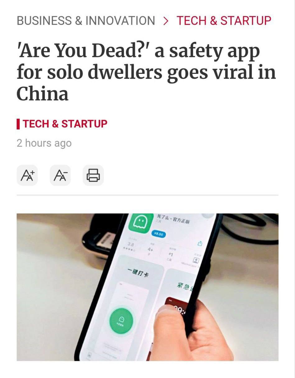 Приложение «Ты умер?» (Are You Dead?) набирает популярность в Китае, предлагая уникальный подход к обеспечению безопасности.
